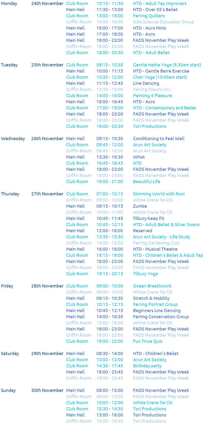 Weekly Events at the Village Hall